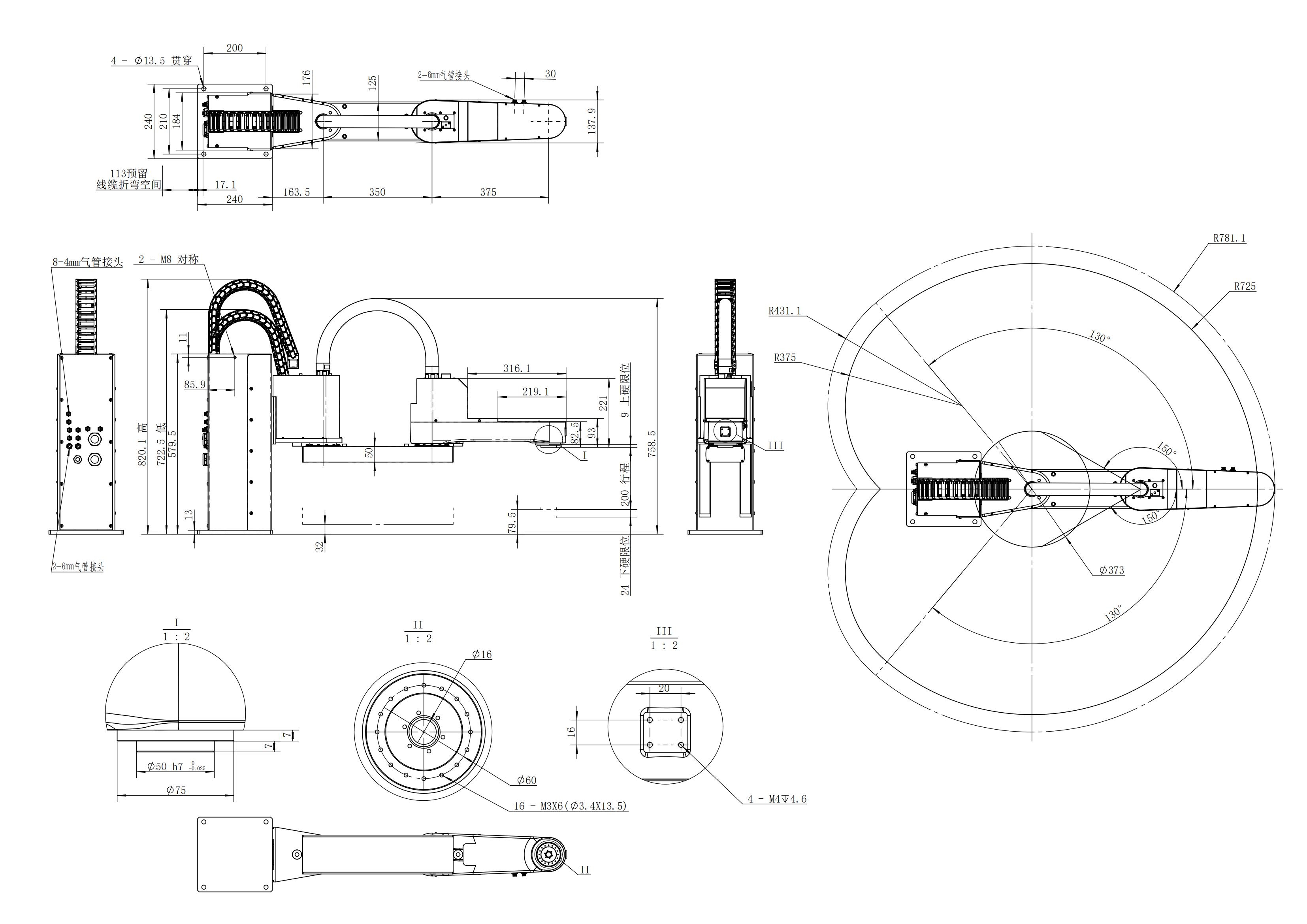 J1±0.02mm J2+J3合成±0.02mm J4±0.01°