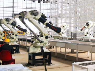 根據MES信息化需求,對中小板立庫提出需求,由AGV進行配送至上料工位,機器人進行自動上料,在分揀線上通過視覺比照、二維碼識別等技術手段,將泵車生產所需的各種型號工件進行分類,機器人下料抓取入框,然后由AGV小車配送至各需求工位。
